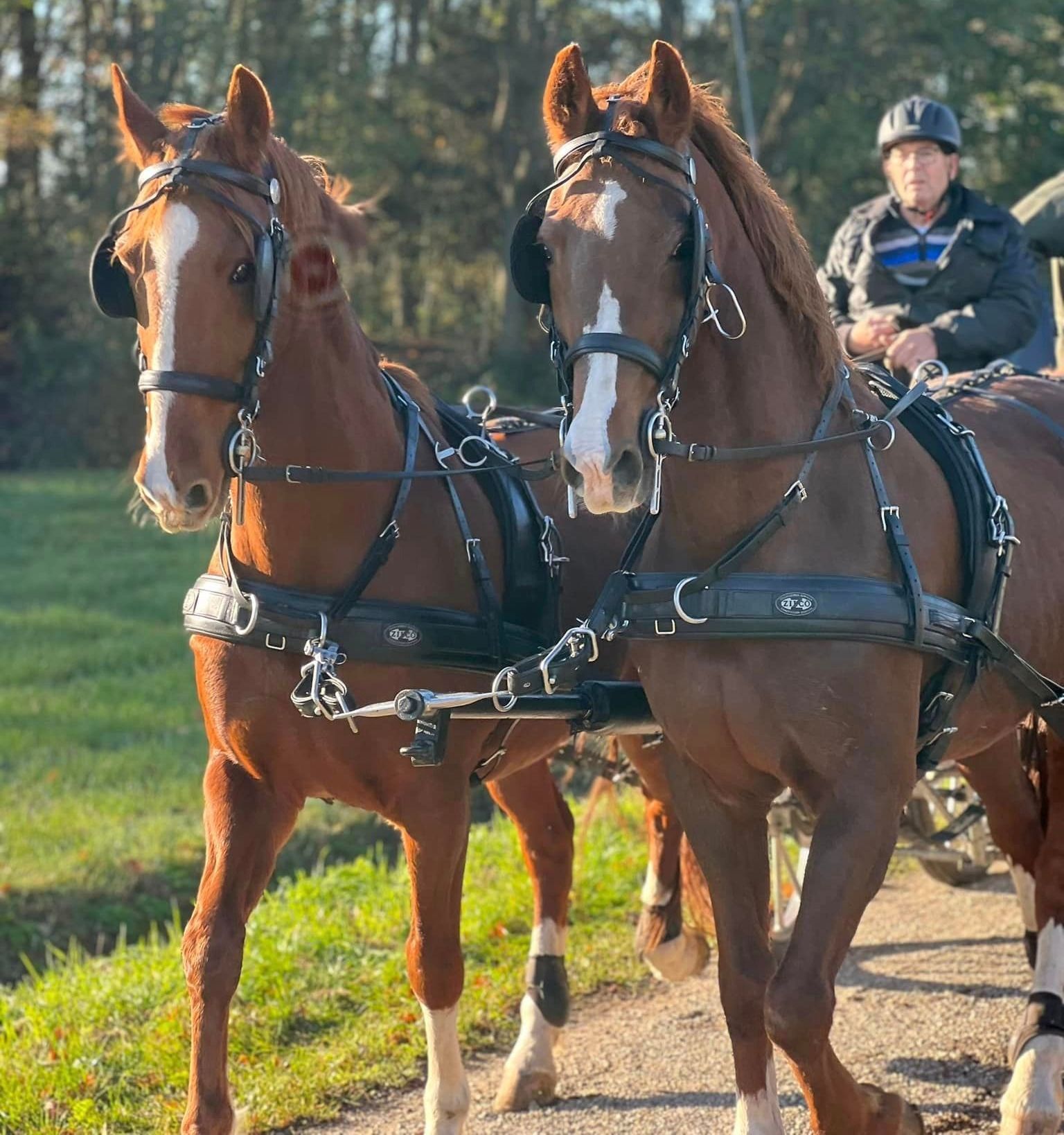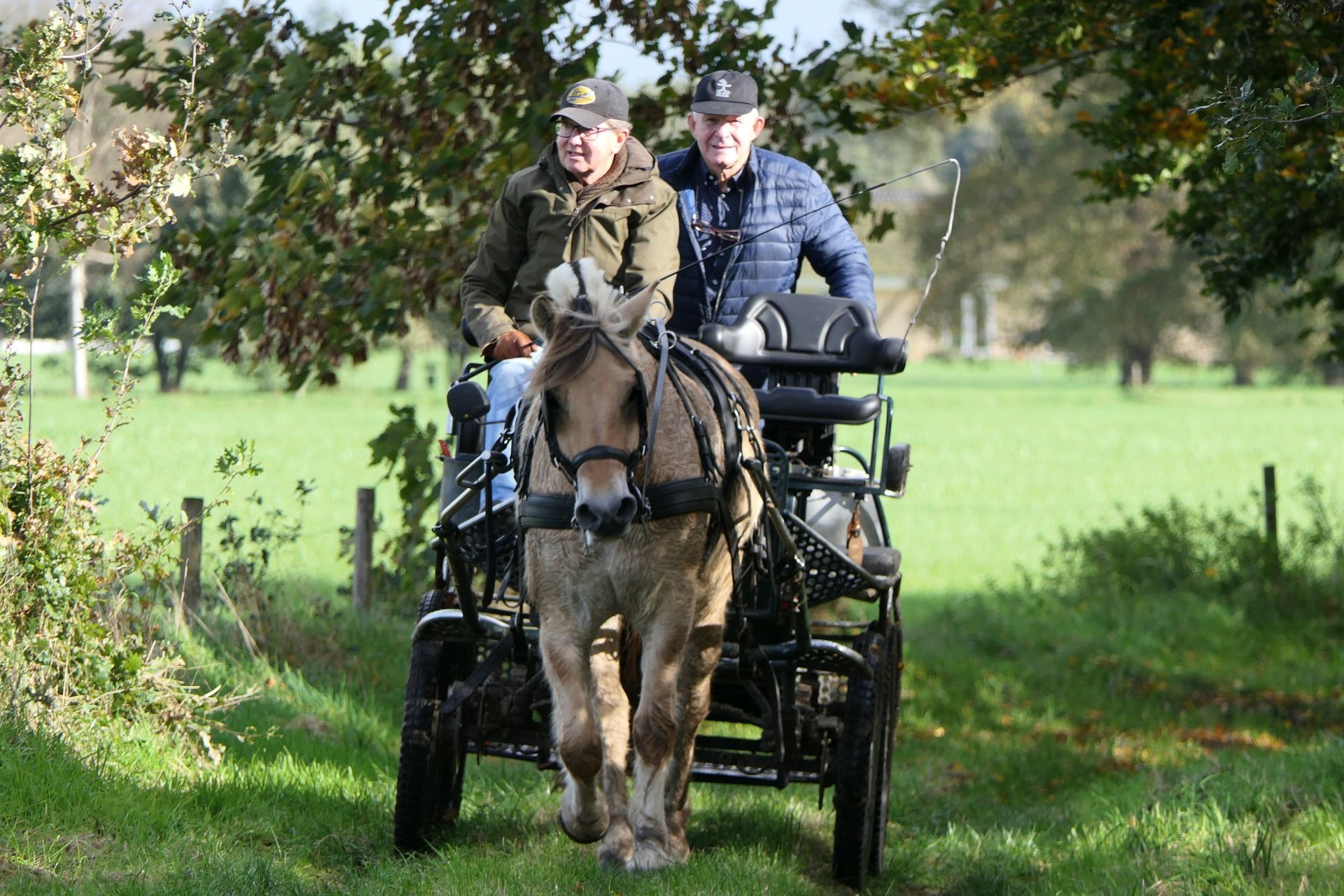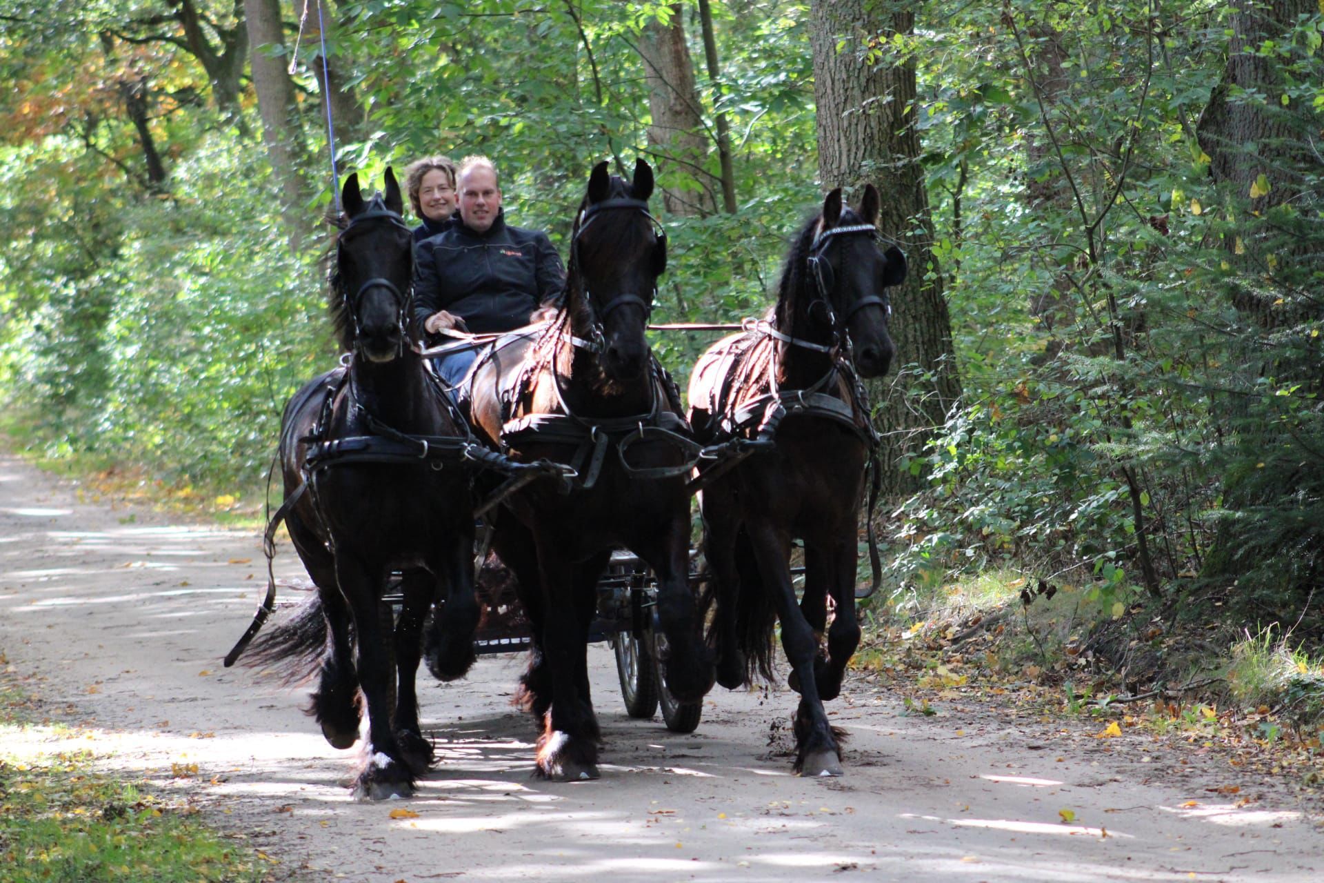 Na jaren met Han 2 span te hebben gereden met Roxie & Olgard rijdt Henk nu als groom bij Han op de wagen met zijn stoere Fjord.